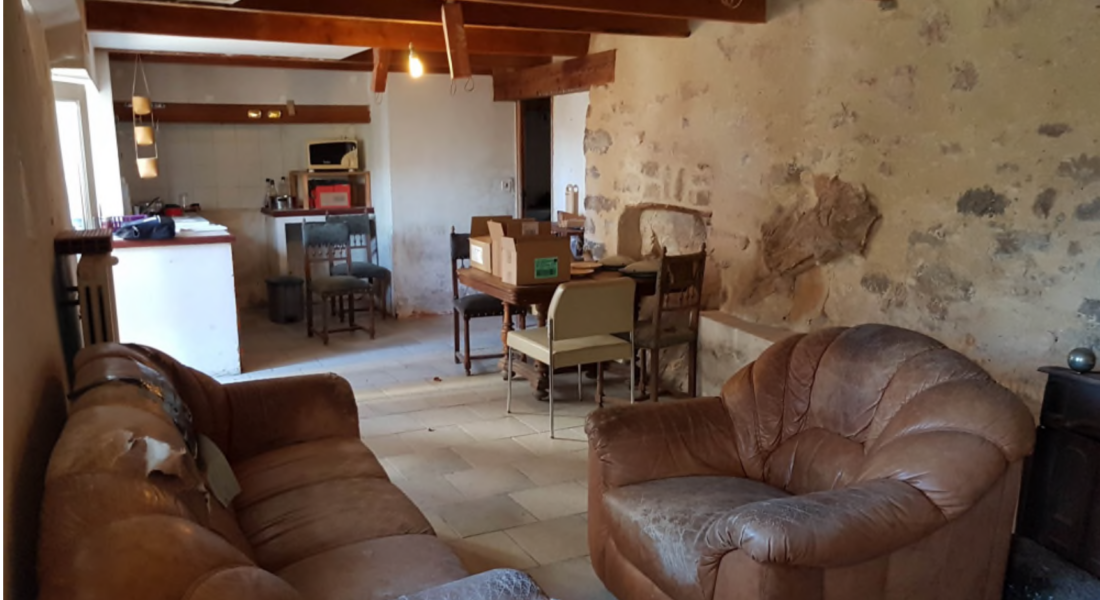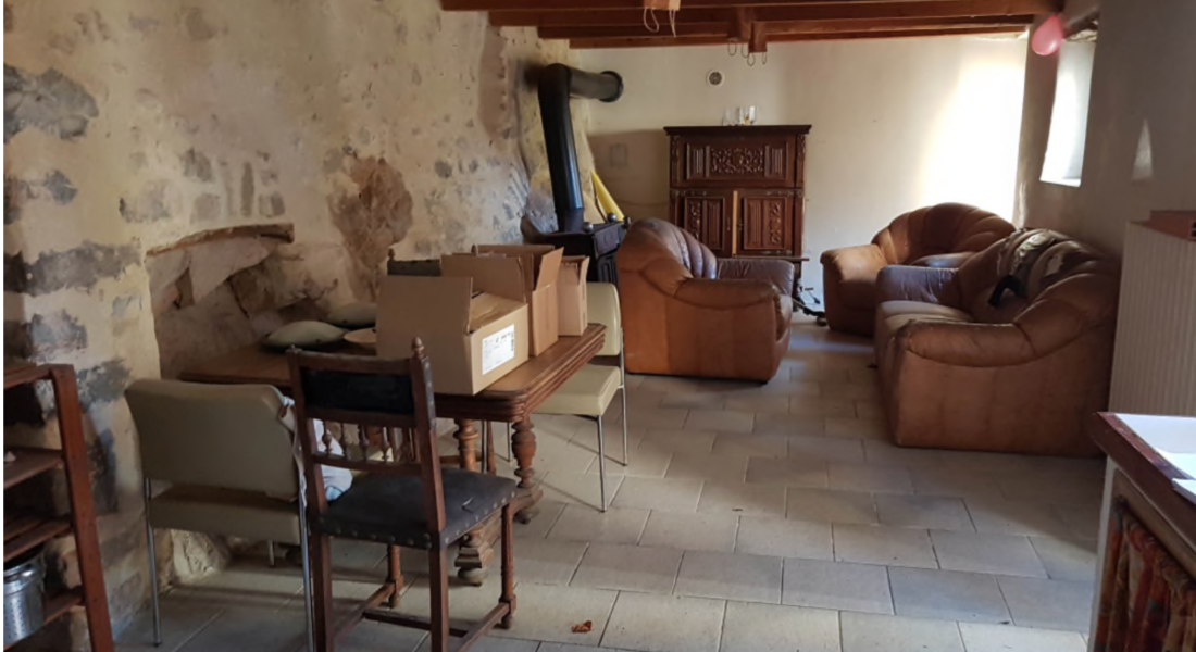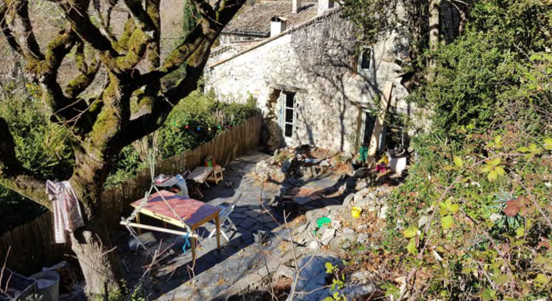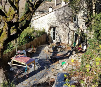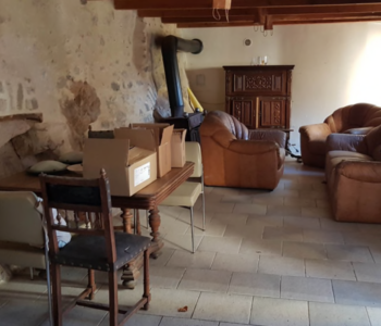 Le studio situé en dessous est composé d’une pièce principale + une salle d’eau avec wc. L’ensemble est à rénover et un problème d’humidité récurent serait à traiter. L’électricité est individuelle, le chauffage est collectif, l’assainissement est raccordé à une fosse septique. Les murs sont en pierre, les façades sont rénovées, la toiture est âgée de 40 ans. L’ensemble est intégré dans une maison de village mitoyenne, faisant partie d’un petit hameau.